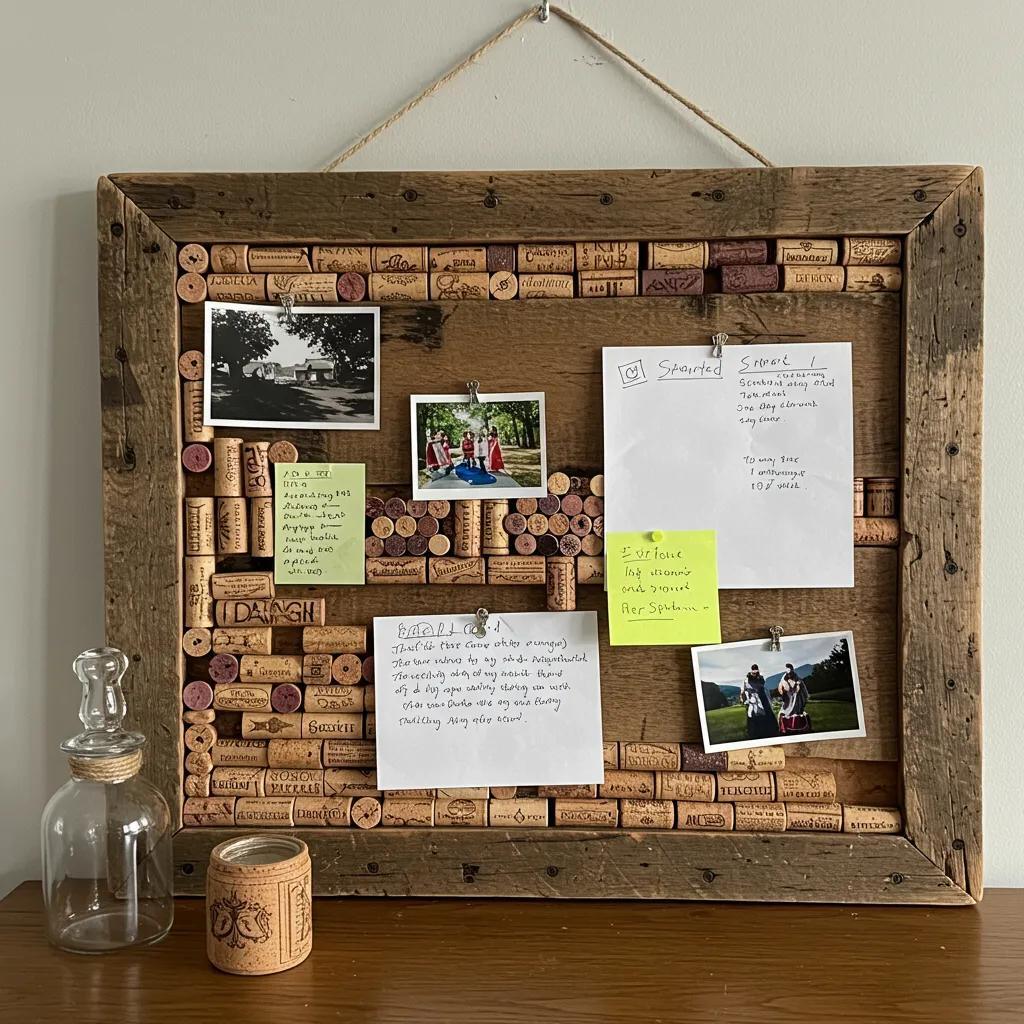 Upcycled notice boards repurpose common household items into unique display panels that reduce waste while creating one-off designs for rustic, vintage or industrial interiors. Reclaimed frame-and-cork assemblies, wine cork mosaics, pallet wood with chicken wire, and fabric-scrap patchwork mounted on lightweight board all convert cast-off materials into functional displays. Sustainability is achieved by prioritising reclaimed wood or straps, choosing natural or recycled fabric scraps, and sealing reclaimed surfaces for indoor longevity and safety.